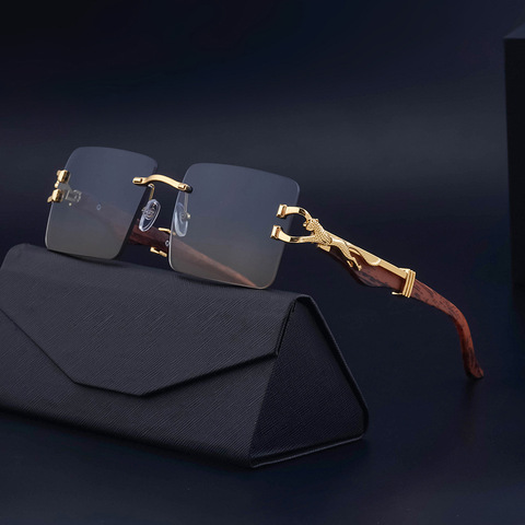 Gafas de sol rectangulares sin marco decoradas con guepardo, gafas de sol de lujo de Metal Retro UV400 dorado y plateado para hombres y mujeres